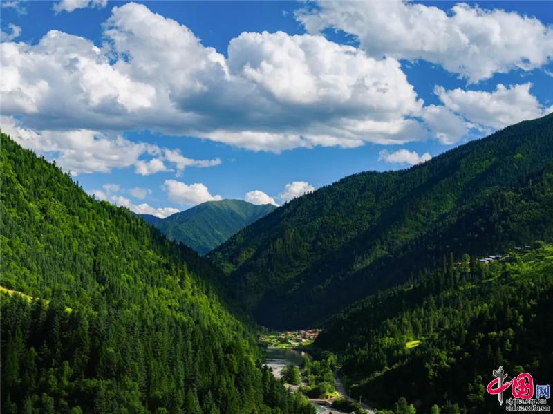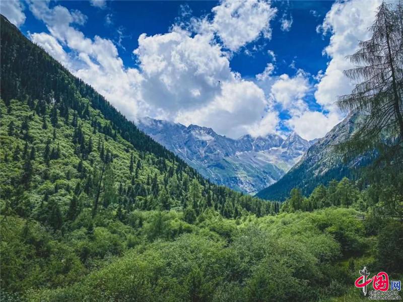 6月,达古冰川堪称最佳避暑天堂。低山区,茂盛的森林,绿油油的草甸,青山绿水,一片生机勃勃的样子。