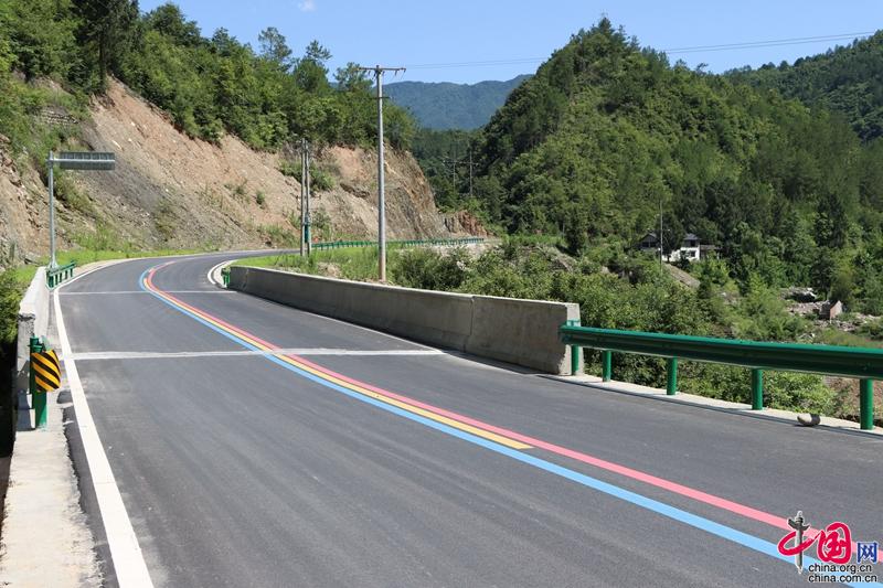 同唐家河公路一样,青龙湖旅游公路一样铺上了彩色标示线,青山绿水之间,是一道彩虹般的分界。截至今年7月初,青川共建设标准美化旅游公路6条共93.04公里,全年将建好8条共112.5公里标美化旅游公路。