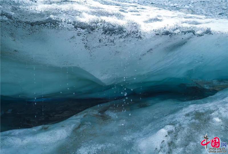 随着冰雪融化,逐渐露出了真容的超炫酷蓝色冰川正等你来打卡。