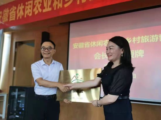 会上,省农业农村厅副厅长王红为新任会长单位一一安徽农道文旅产业发展有限公司颁发省休闲农业和乡村旅游协会会长单位荣誉牌,协会常务副会长兼秘书长董仁泉作协会2022年度下半年工作报告,并为新当选的副会长单位、理事单位以及新聘请的专家顾问授牌并颁发证书。