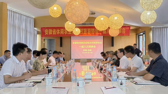 中新网安徽新闻7月13日电 12日,安徽省休闲农业和乡村旅游协会一届八次理事会在合肥市蜀山区小岭南成功召开,安徽省农业农村厅副厅长王红,安徽省农业农村厅乡村产业发展处处长杨亚明、副处长樊君,合肥市乡村振兴办副主任、二级调研员肖波,省协会党建指导员ト华银、协会专家顾问杨效忠、路曦结、陈军,安徽省休闲农业和乡村旅游协会新任会长沈欣以及协会理事单位部分成员共40余人出席了本次会议,协会常务副会长兼秘书长董仁泉主持会议。