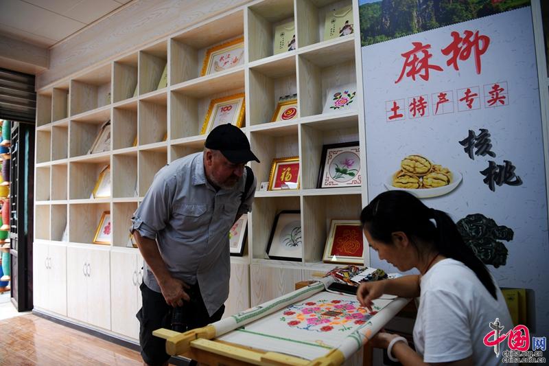领略了康养的魅力,大家来到汉王老街感受厚重的历史文化和地方特色文化。一进入街道,核桃饼、曾家山腊肉、麻柳刺绣等地方特色产品便吸引了大家。近年来,随着曾家山旅游产业的发展,汉王老街已逐步发展为集民俗文化表演、非物质文化遗产展示、文创产品售卖、文化养生、旅游商品销售等为一体的特色街区,是外地游客必来的打卡之地。