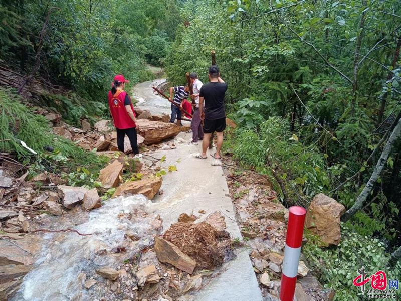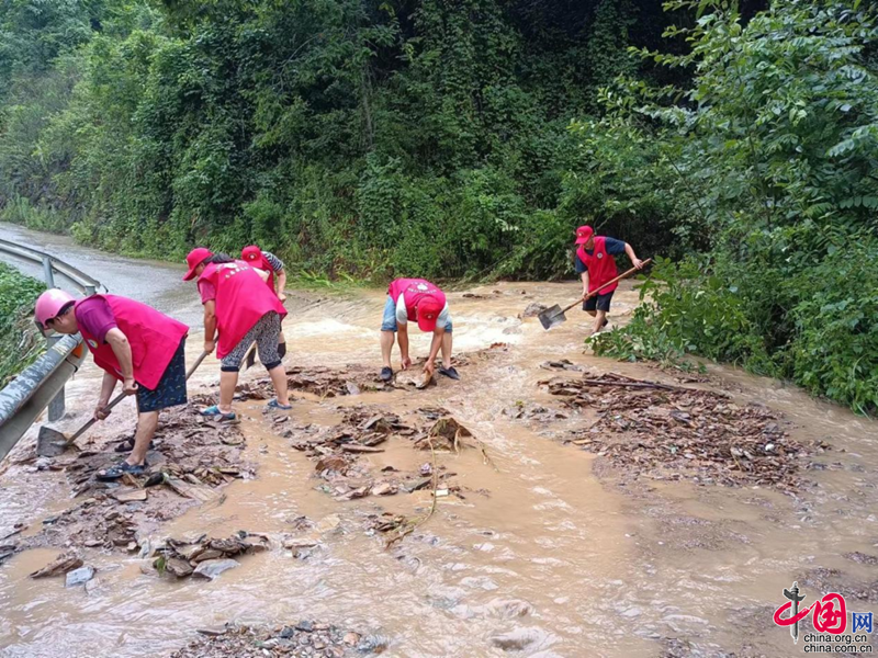凉水镇新时代文明实践站志愿者深入到防汛一线,干群联合行动,开展道路抢修、陈杂清障、灾情排查和生产自救工作。