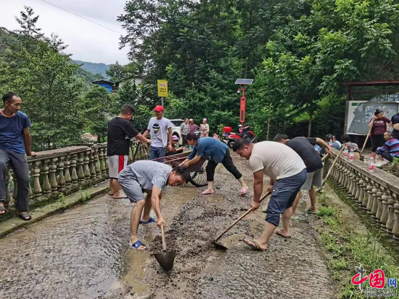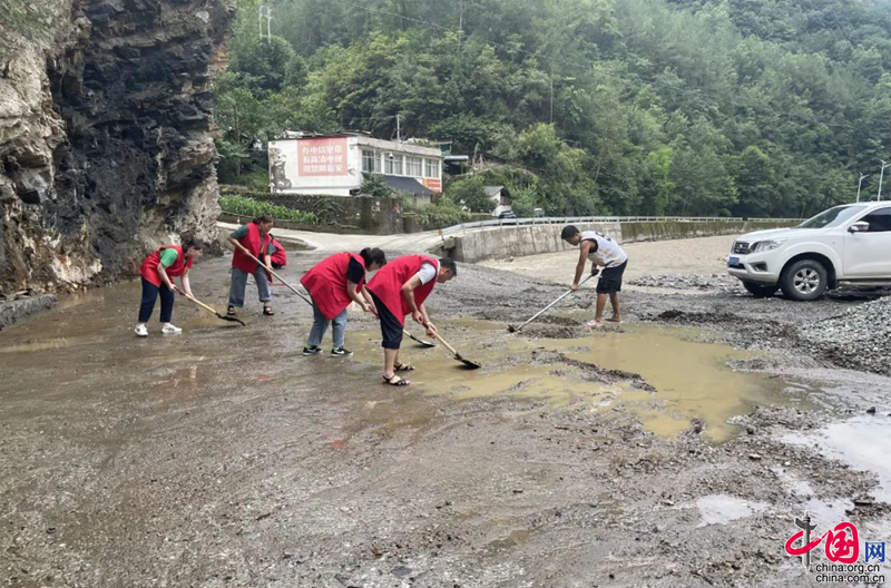 大院回族乡党员志愿队伍积极开展道路清淤、房前屋后垮方清理等工作。