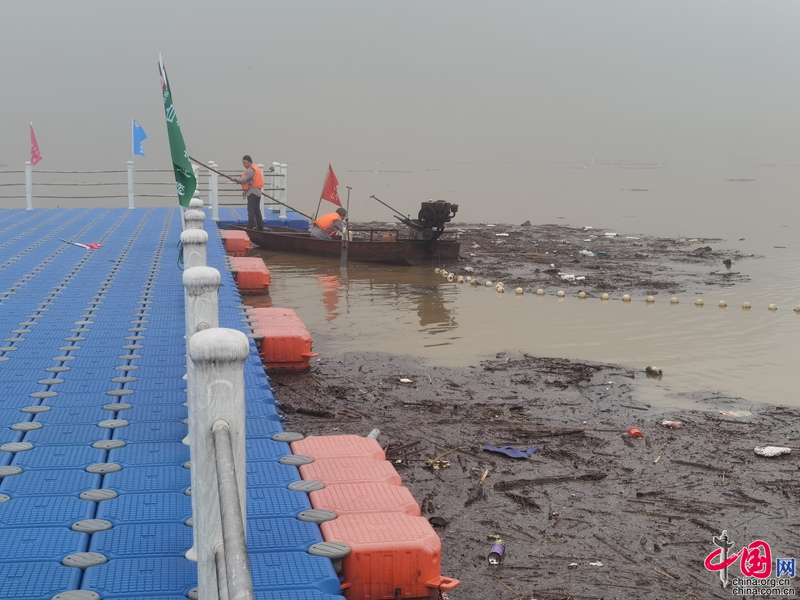 白龙湖保护与发展中心积极开展汛后垃圾打捞工作。