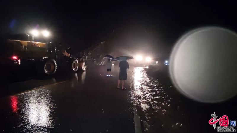 七佛乡党员应急抢险队伍深夜冒雨巡查地质灾害点以及隐患点,在危险区设置山洪警示标识,紧急转移安置群众,组织群众自发抢通保通乡村道路。