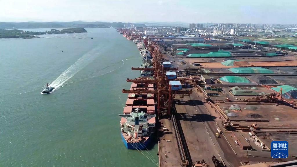 这是广西防城港煤码头(7月30日摄,无人机照片)。