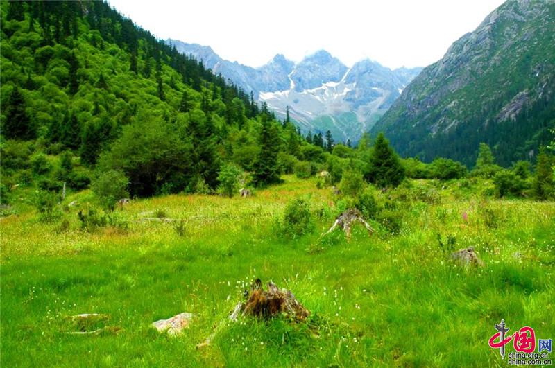 夏季的达古冰川,阳光和煦,青山蔽日,林海盛世,充满了清凉的味道。