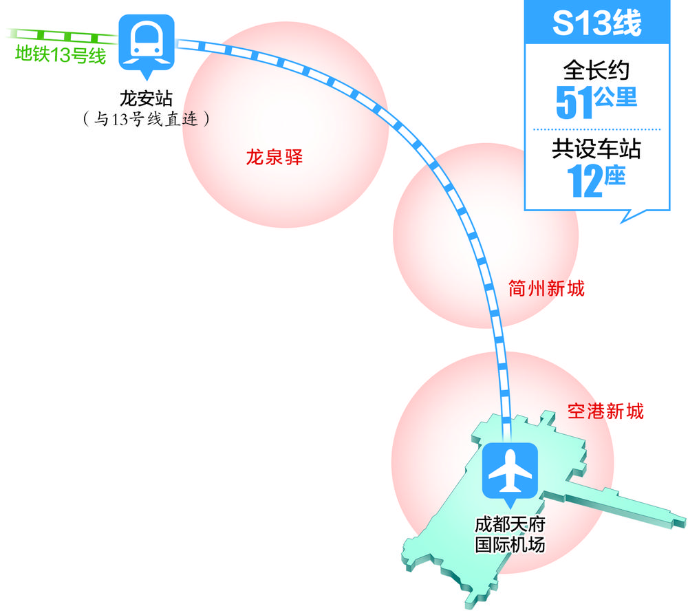 记者日前从成都市住房和城乡建设局获悉,成都将再添一条直连天府国际机场的市域(郊)轨道交通线路——龙泉驿至天府国际机场线(S13线),极大地方便城东片区与新机场的联系。