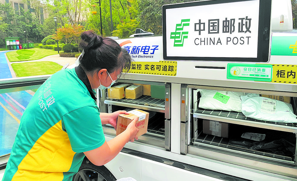 邮政无人配送车可实现无接触配送。
