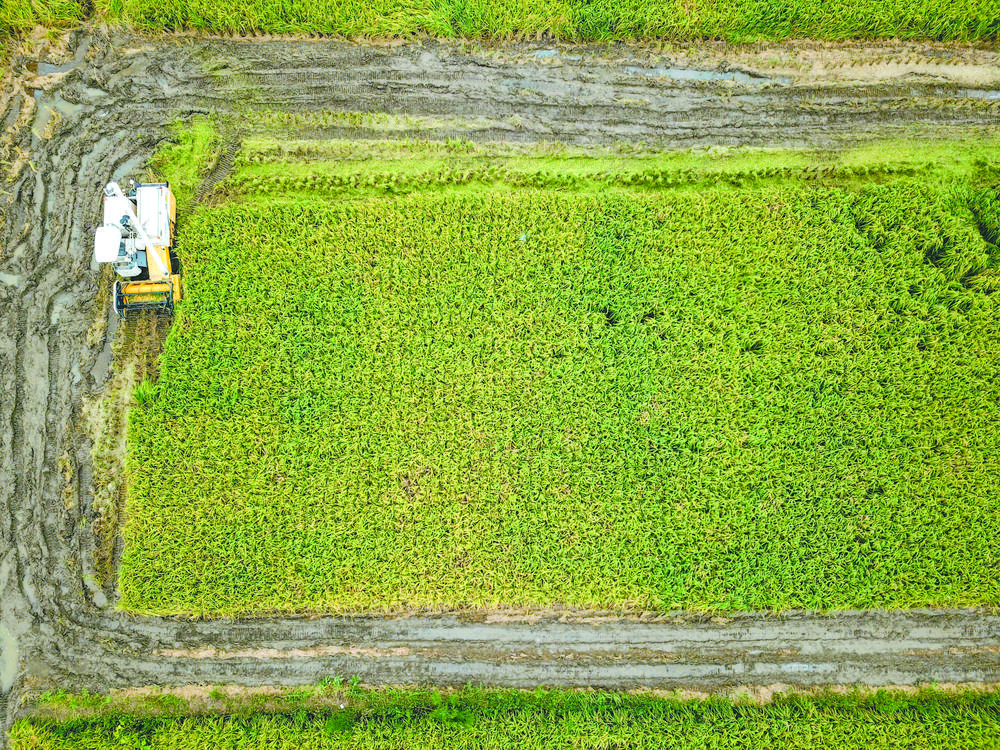 在崇州,5G+智能无人收割机沿设定的路线完成收割任务 成都日报资料图片 胡大田 摄