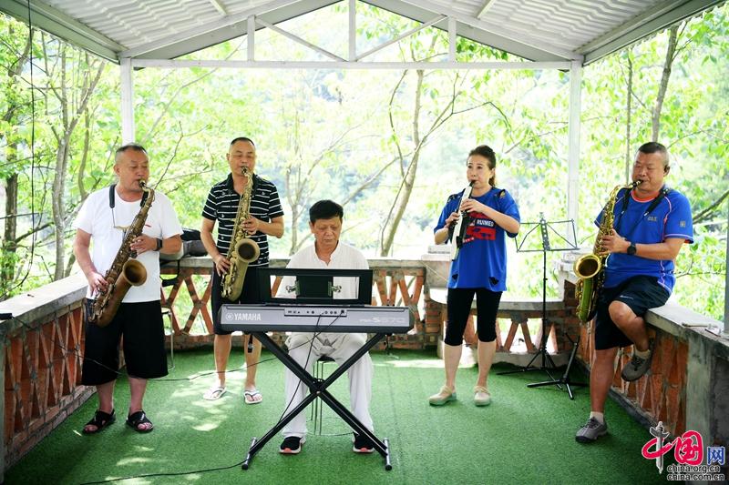 8月8日,骄阳似火,但在海拔1400米的广元市朝天区曾家镇却是凉爽宜人。沿着蜿蜒的山路,一路绿水青山,还没进入白鹰村柳树垭生态农庄,就传来阵阵优美的乐器演奏声。“曾家山是避暑的好地方,我们连续来3年了。”表演结束后,乐队负责人何玲说,他们来自南充,每年从6月底就开始在这里入住,一直持续到8月底。