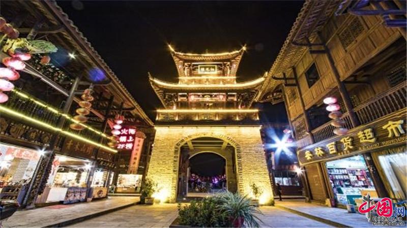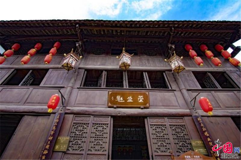 飞凤桥连接了新街和老街,老街两边的屋宇错落有致,酒旗猎猎,沿街漫步,两旁参差不齐的风景,犹如画里人家。那些年代久远的朱漆梁柱上结起了红绸,沿着斑驳的木质楼梯拾阶而上,透过“洪盛魁”的雕花窗棂远眺,多少繁华都如过眼烟云,消失在历史的长河。