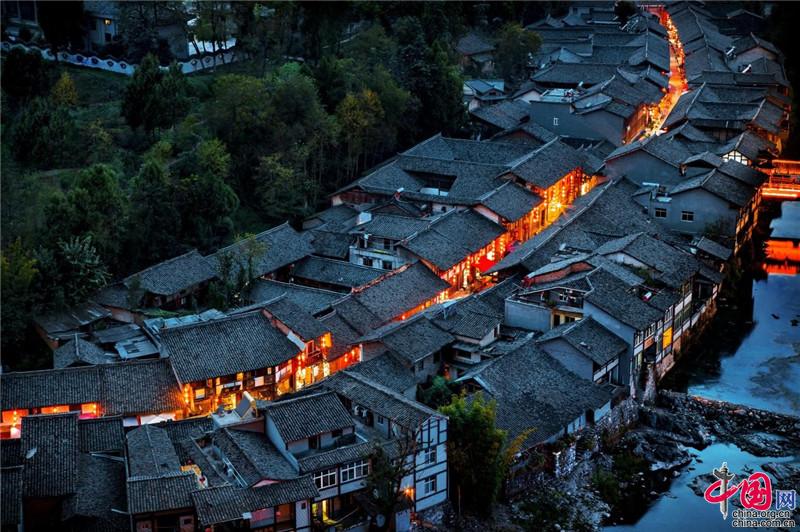 金溪河默默流淌在青木川的青砖黛瓦间,将古镇一分为二。一百多座风格迥异的明清古建沿街而立。高大的牌坊、气派的宅院,精美的石刻,荷塘里的云影,门前小河中自由穿梭的锦鲤……行走在古老的青石板路上,仿佛还能听到辅仁中学的琅琅书声,还有那些商贾云集、红灯高挂下纸醉金迷的浮华世事。
