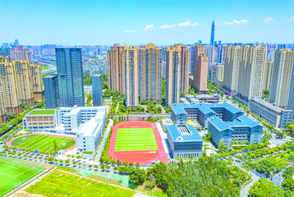 崭新的红色跑道上,白色标线已经划好。跑道中间是绿色的标准足球场,深绿与浅绿相间的场地看上去非常养眼——这就是位于锦江区成龙街道华新村的成都市七中育才学校华兴分校。“学校总占地面积24126平方米,建筑面积为32641.15平方米,建有教室48间,设有教学综合楼6层、风雨操场、会议室、图书室、餐厅、报告厅等活动区域。项目建成后将引进七中育才优质教学资源引领办学,预计今年秋季投入使用。”成都城投集团相关负责人介绍道。