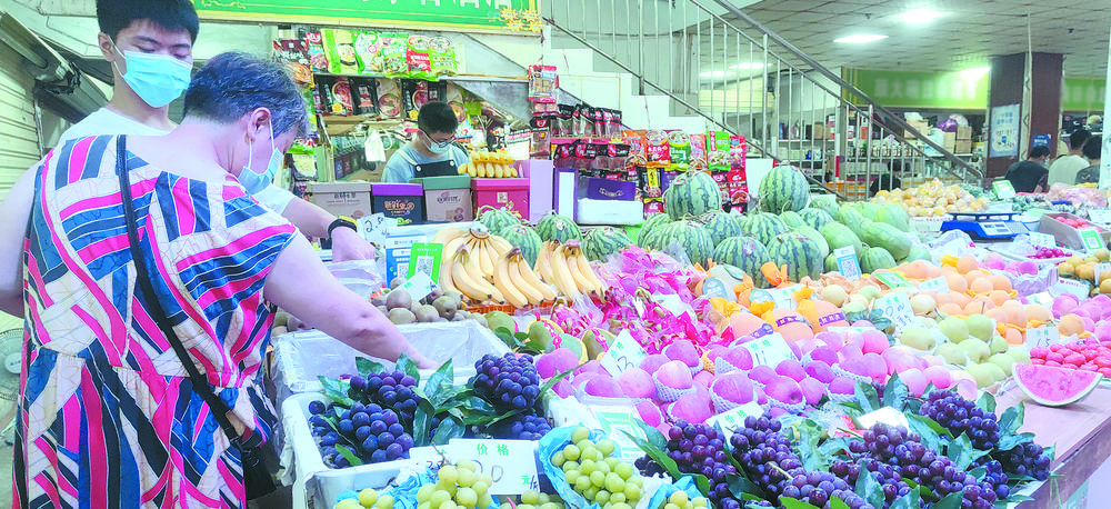 “请戴好口罩,出示健康码,并扫场所码。”在工作人员礼貌提醒后,记者进入市场,映入眼帘的是一排排宽敞的通道,通道上方是醒目的“蔬菜区”“水果区”“水产区”等区位指示牌。缤纷靓丽的装修风格,井然有序的摊位,消防系统、水电线路等硬件设施全面完善。