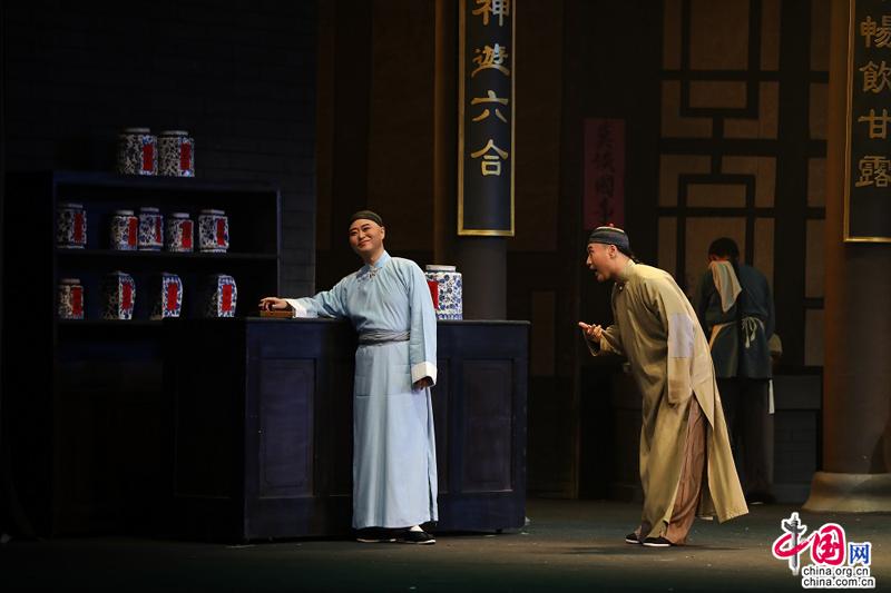 中国网讯 古朴粗放的宽条凳,八仙桌上的老瓷碗,京腔京韵的吆喝声……每一个都包含观众朋友们咂摸不够的北京味儿。北京曲剧《茶馆》作为北京市曲剧团的经典剧目,自1998年创排以来就深受观众朋友的喜爱,至今已经演出近150场,场场演出几乎都是座无虚席。