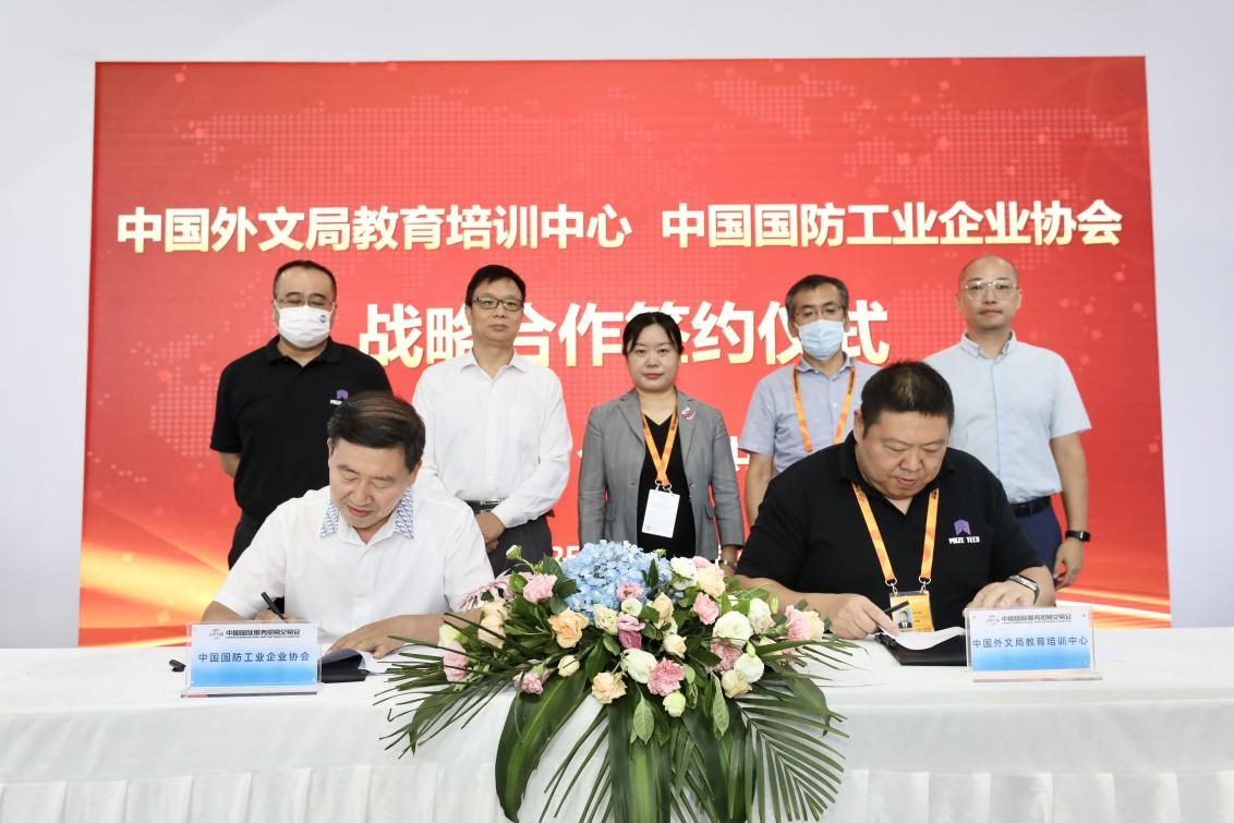 中国网讯 9月2日下午,中国外文局教育培训中心与中国国防工业企业协会在2022年中国国际服务贸易交易会首钢园中国外文局展台举行了战略合作签约仪式。中国外文局计划财务部主任赵丽君,中国外文局计划财务部副主任杨秀端,中国外文局教育培训中心副主任李恒田,中国国防工业企业协会综合部主任果朝阳,墨责(北京)科技传播有限公司总经理林凡林,墨责(北京)科技传播有限公司副总经理、中国国防工业企业协会国际合作工作委员会主任蒋雪飞及中国国防工业企业协会国际合作工作委员会副主任苏鹏出席了本次签约仪式。墨责(北京)科技传播有限公司总经理林凡林和中国国防工业企业协会综合部主任果朝阳分别代表双方在合作协议上签字,同时还签署了墨责(北京)科技传播有限公司与中国国防工业企业协会国际合作工作委员会合作备忘录。