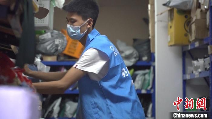 快递员易明忙碌在快递驿站。 吕杨 摄