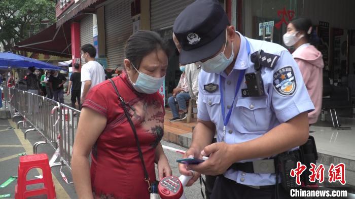 民警杨智杰在核酸检测点为居民答疑解惑。 吕杨 摄
