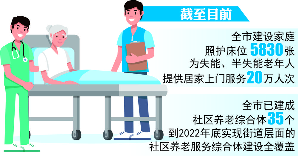 截至目前,全市建设家庭照护床位5830张,为失能、半失能老年人提供居家上门服务20万人次。