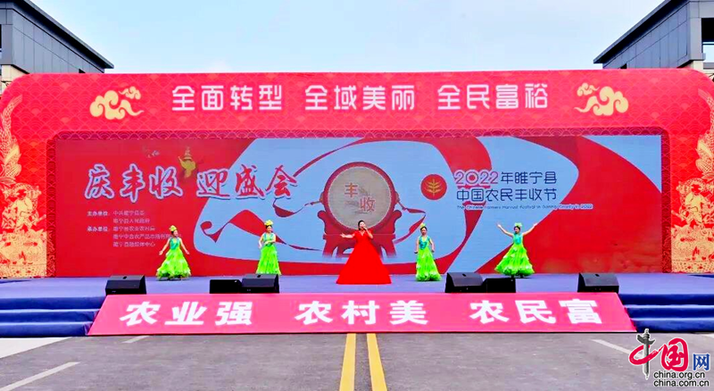 时维九月,序属三秋。金秋的睢宁,稻花飘香,螃蟹肥美,处处涌动着丰收的喜悦。活动开幕前,与会人员参观了全县农业农村成果展,观看专题片《睢宁农业这十年》和《大地丰收》,详细了解睢宁10年来的农业发展状况。来自各个乡镇的演员们自编、自演《美丽心情》《我们的家乡》《退彩礼》《唱支山歌给党听》《在希望的田野上》等节目,营造了热烈欢快的气氛。徐州市农业农村局副局长周琳高兴地说,睢宁农业产业丰富,一二三产融合较好,这次活动,既是睢宁145万农民庆丰收晒丰收的节日,也是全社会想丰收助增收的节日,睢宁要充分发挥节庆效应,构建产销对接长效机制,打造庆丰收全民购物节。