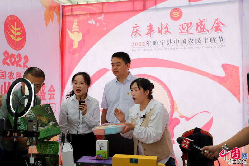 中国网9月19日讯 凌城大闸蟹、魏集的西瓜、官山的灵芝、王集小花生、姚集猕猴桃……9月17日上午,由江苏省徐州市睢宁县委、县政府主办,睢宁县农业农村局等部门承办,以“庆丰收迎盛会”为主题的的睢宁县2022年“中国农民丰收节”,在睢宁县古黄河农产品批发市场里正式开幕。