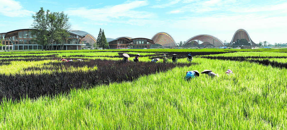 金秋9月,天府农博园大田展区3000亩稻谷丰收在即。一望无际的稻浪中,农博主展馆、“青苗”“瑞雪”“星河”“谷仓”等建筑地景与金色的稻浪相映生辉,共同迎接9月23日的2022年中国农民丰收节。