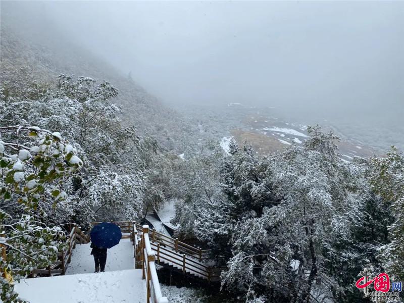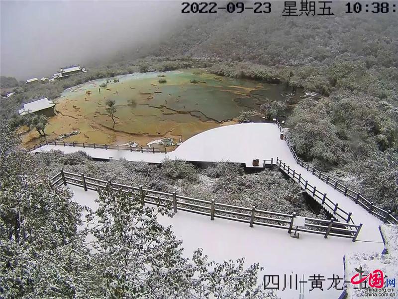 9月23日,在这传统的秋分时节里,黄龙景区迎来了今年第一场雪