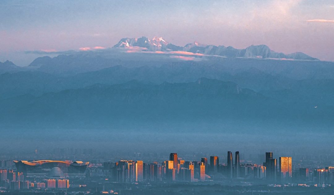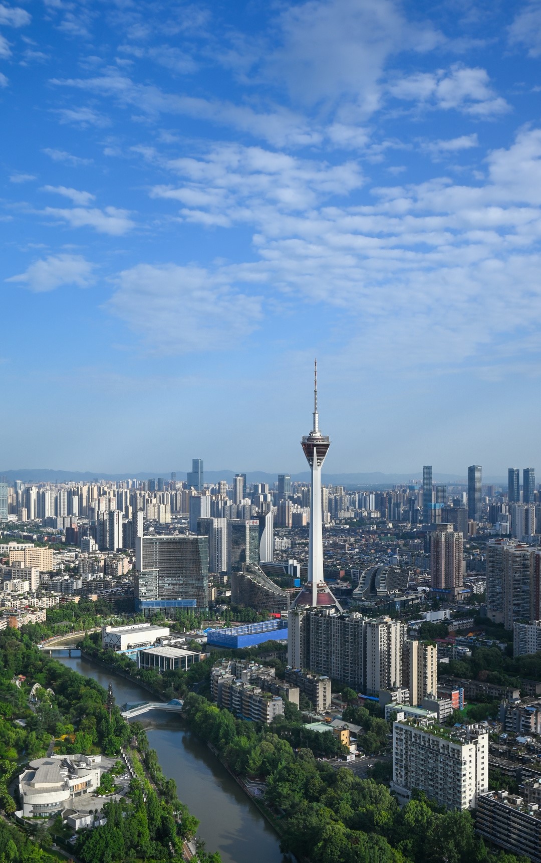 从旭日东升,到月落枝头,城市地标在照片里分割着光影,不断变换自己的“衣装”,向外界辐射着成都的魅力。