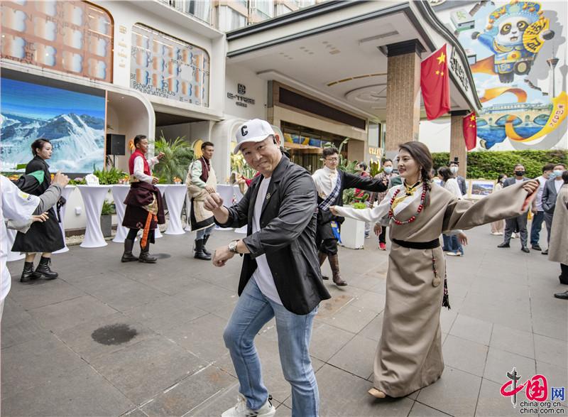 现场还有集体锅庄等互动环节,更是将气氛直接拉满,不少市民朋友主动参与其中,嘉宾和游客一起锅庄互动,感受藏族人民的歌舞文化与热情好客,玩得不亦乐乎。浓烈的民俗氛围,热情的藏家小伙儿和姑娘,如诗如画的雪国风光……让成都的市民朋友沉浸式体验了一把“瞬移”达古冰川的感觉,围观的市民朋友纷纷表示,等疫情过去,一定要去达古冰川观光游玩。