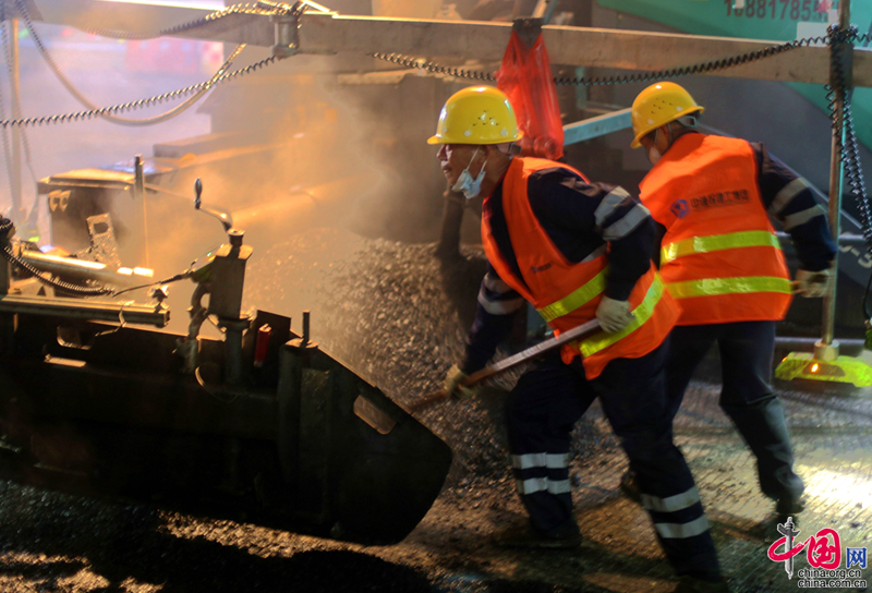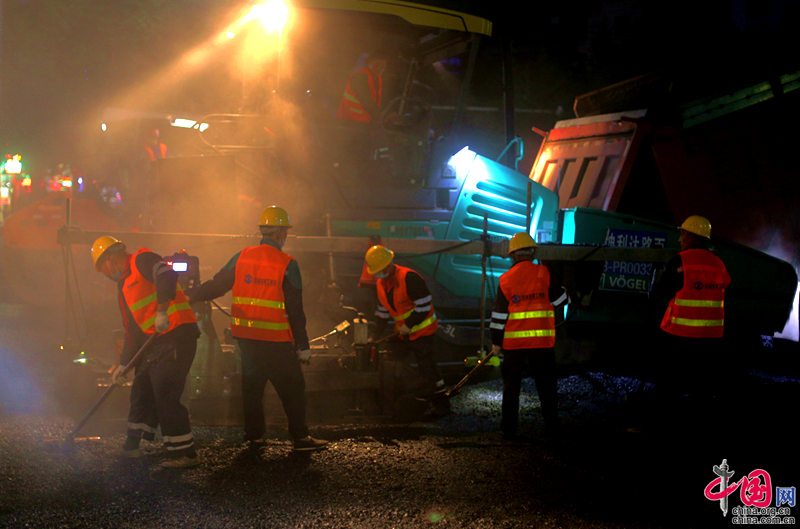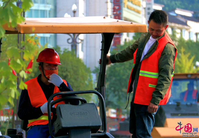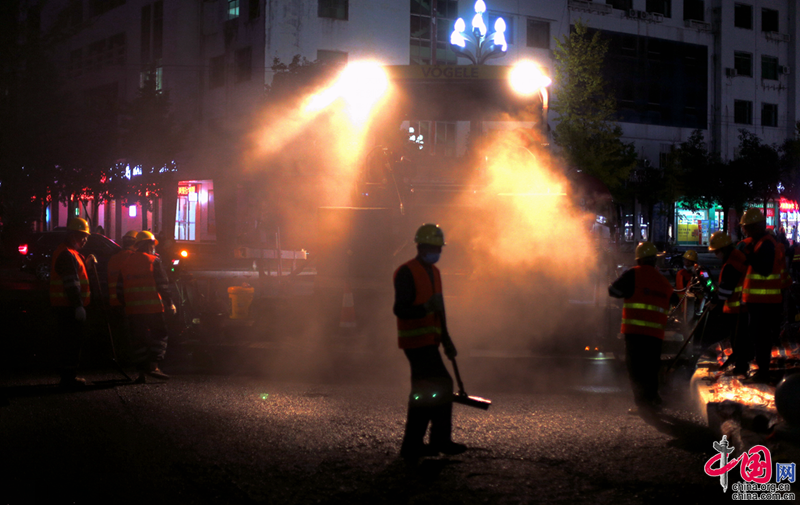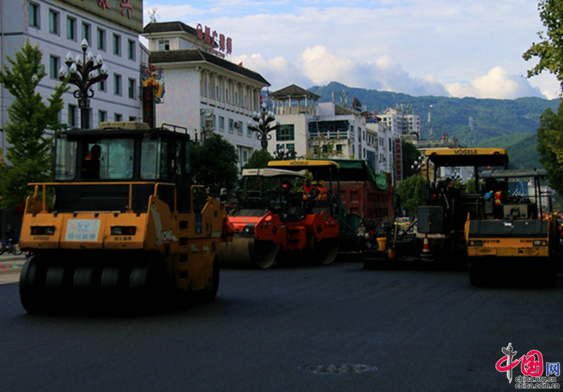 近日,四川剑阁县主城区剑门大道提升改造工程进入最后的沥青铺筑阶段。