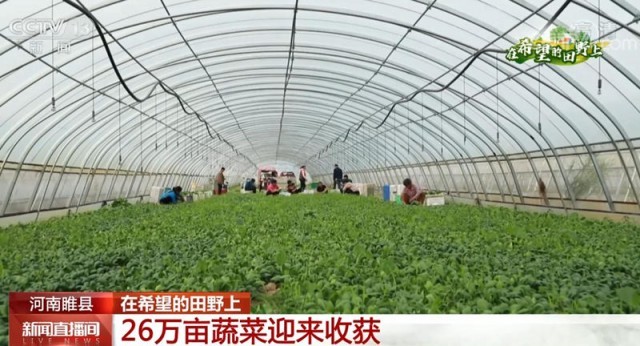 近日,河南睢县成片蔬菜陆续迎来收获,在蔬菜种植基地,绿油油的上海青轮茬成熟,村民们忙着采收打包装车。蔬菜种植产业的规模化、设施化发展有效提高了土地利用率,当地的上海青种植实现了“四季轮番种、一年收八茬”。 目前,睢县蔬菜种植稳定在26万亩以上,总产量稳定在75万吨左右。