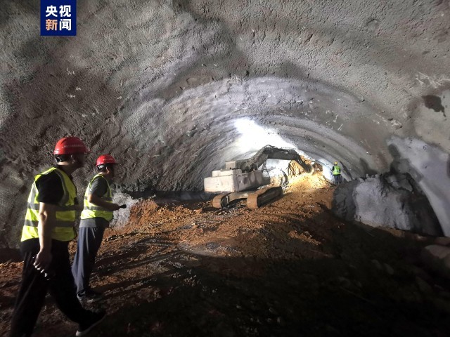 此次贯通的潘村隧道位于南宁市横州校椅镇,全长1770.47米,洞身围岩主要为砂岩夹泥岩,浸水后软化,隧道开挖易发生大变形、掉块、塌方等危险,在施工过程中还曾多次出现突泥、涌泥、拱顶沉陷等不利施工情况。围岩较差的突泥、涌泥段,常见的爆破式开挖掘进,只能用传统的凿岩机,挖掘机艰难推进,每天掘进进度只有30至50厘米。