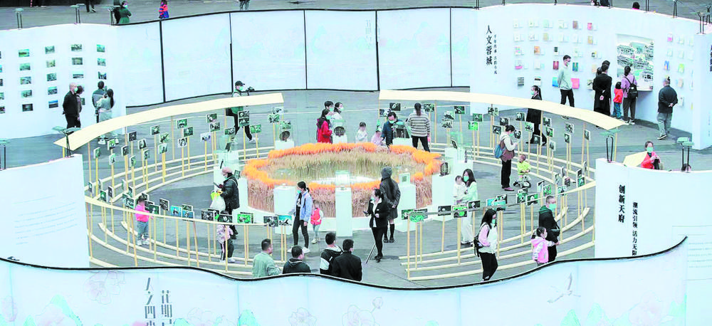 在整个展区的外围,更以多彩的地贴勾勒出城市芙蓉的绿叶,每一片翠绿背后都是一段关于天府的谜语。“这些有趣的谜语就像一个个小惊喜,它们让我对成都有了更深的了解。”一位年轻的观展市民说。
