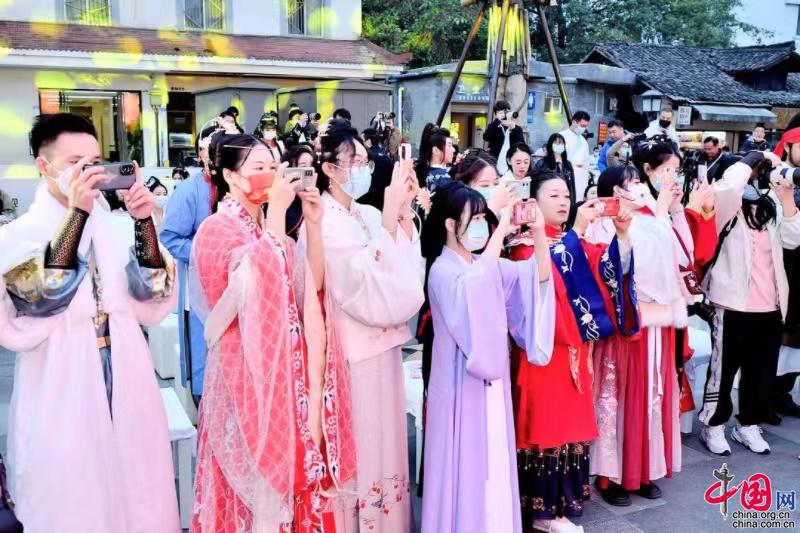 秋末冬初,锦江之畔琴瑟和鸣,文殊坊里游人如织。11月4日晚,以“衣起锦官城,盛世谱华章”为主题的成都汉服周活动正式拉开帷幕。