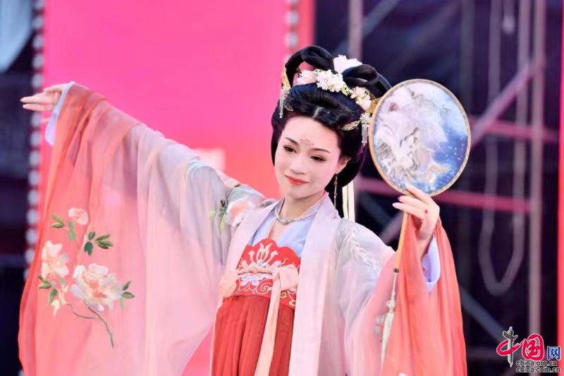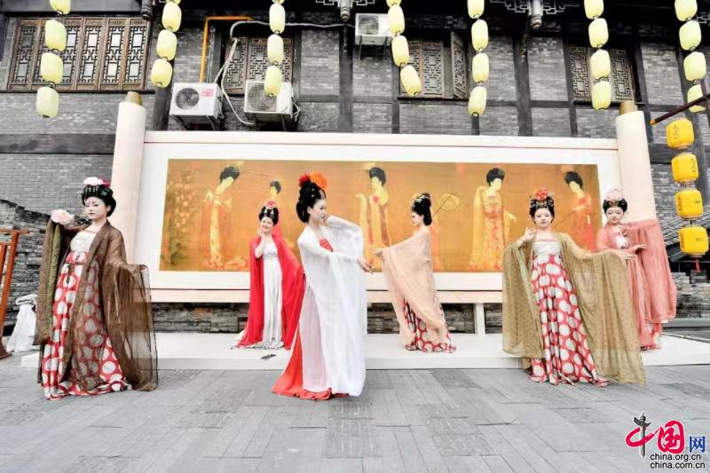在行进过程中,“国风演绎”让唐代古画名作《簪花仕女图》、传统美学、文学灵动“复活”;“长乐集市”“衣与食”集市则再现出蜀中宋、明时代商业的繁华;声势浩大的甲胄士兵、唐香炉仕女、唐行障女官、宋代男女、明宫灯女等古装仪仗方阵,更是穿越感十足。身临其中,仿佛穿越时空隧道,梦回锦官城。开幕式表演“宫廷华章”环节,《飞天惊鸿舞》《大唐红颜赋》等精彩绝伦的国风舞蹈演绎,以及舞者们翩若惊鸿、宛若游龙的柔美舞姿,让观众无不沉醉其中。飒气十足的汉服走秀,更是点燃全场。