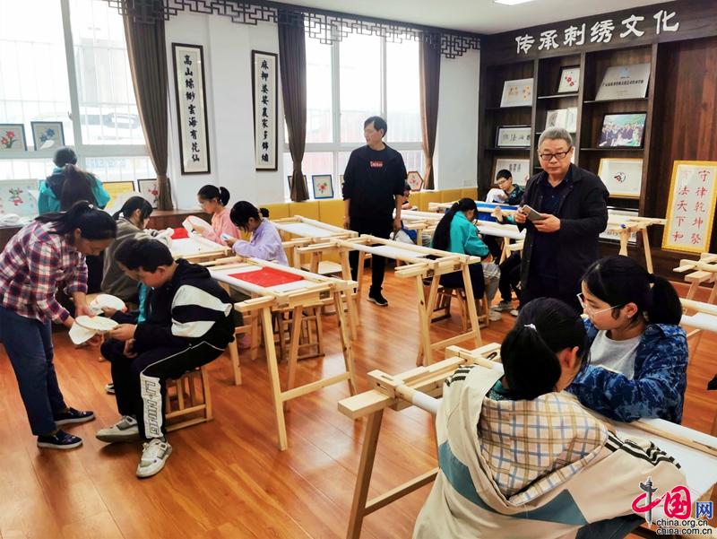 一进学校大门,以“一牌、一屏、一塑、一环”为代表的刺绣文化单元跃然眼前;教室里,孩子们用针线绣出别具风格的班风班训;刺绣传习室和刺绣文化研究室里,一幅幅生动优美的作品整齐排列……