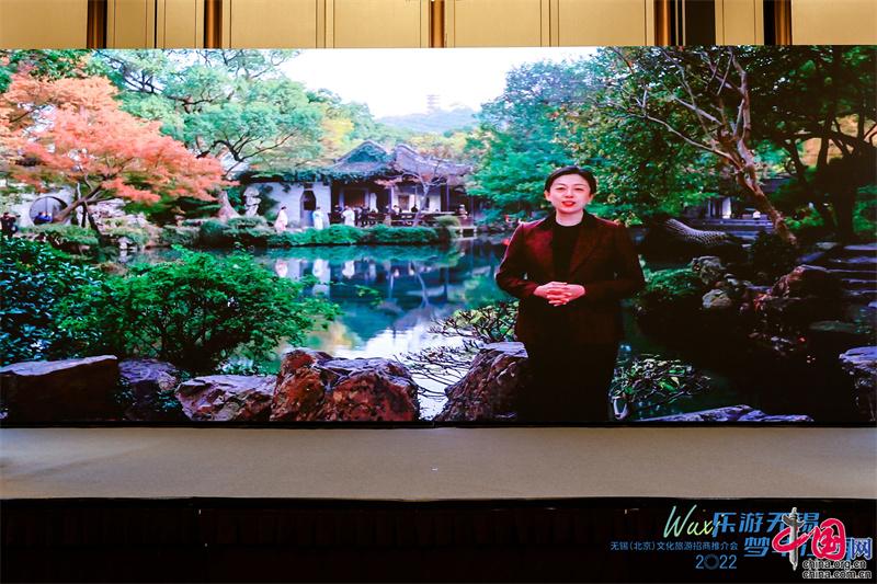 无锡市文化广电和旅游局党委书记、局长蒋蕴洁在闻名遐迩的无锡惠山古镇寄畅园以视频连线的方式致辞。她以充满诗意的语言介绍了无锡的迷人风景和历史文化底蕴,并向北京市民游客发出热情的邀约,邀请北京朋友到无锡来亲自感受这座令人会心一笑的精彩城市。