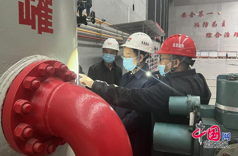 执法人员在实地检查特种设备运行状态