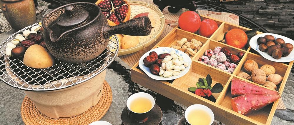 传统中式茶搭配新鲜水果与酥香坚果,让生活热气腾腾