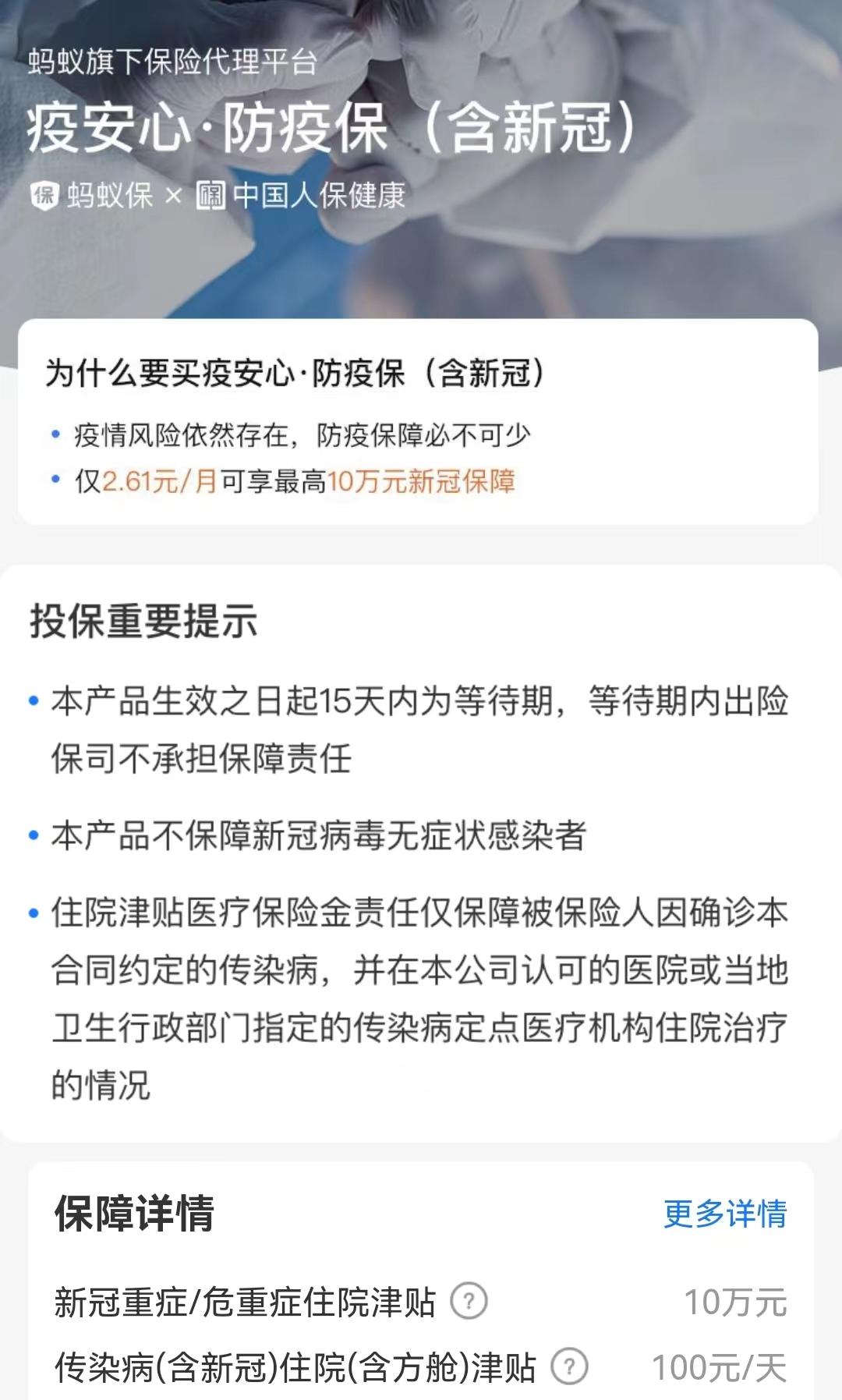 在支付宝平台,记者搜到“疫安心·防疫保”,但提示称“不保障新冠病毒无症状感染者”。另一款“无忧保综合意外险”包含新冠肺炎身故,保额为25万元。