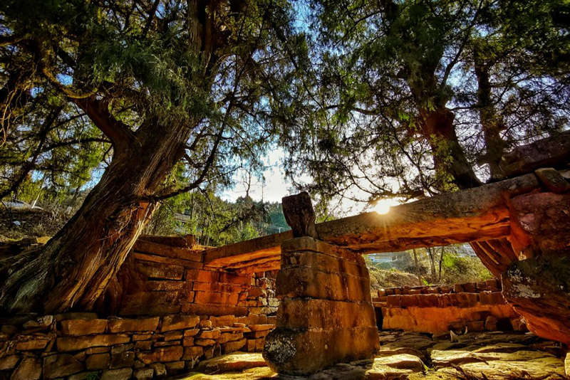 这里有拦马墙,它是剑门蜀道中翠云廊的重要一段,拦马墙的特色是“三古”:道古、树古、交通设施古,堪称“天下第一古道”。