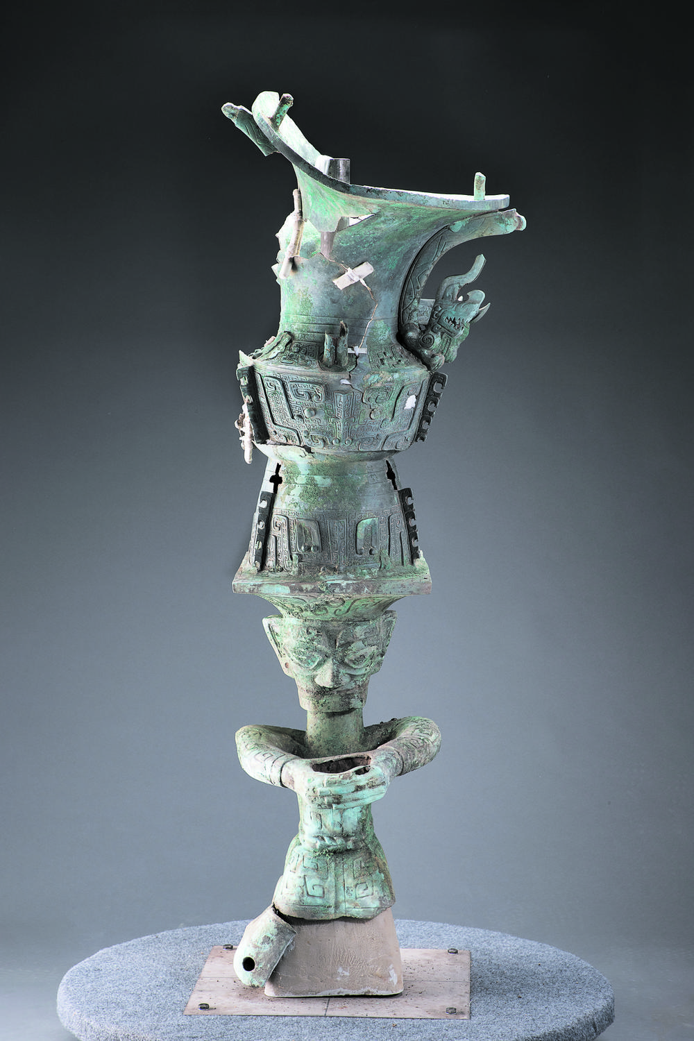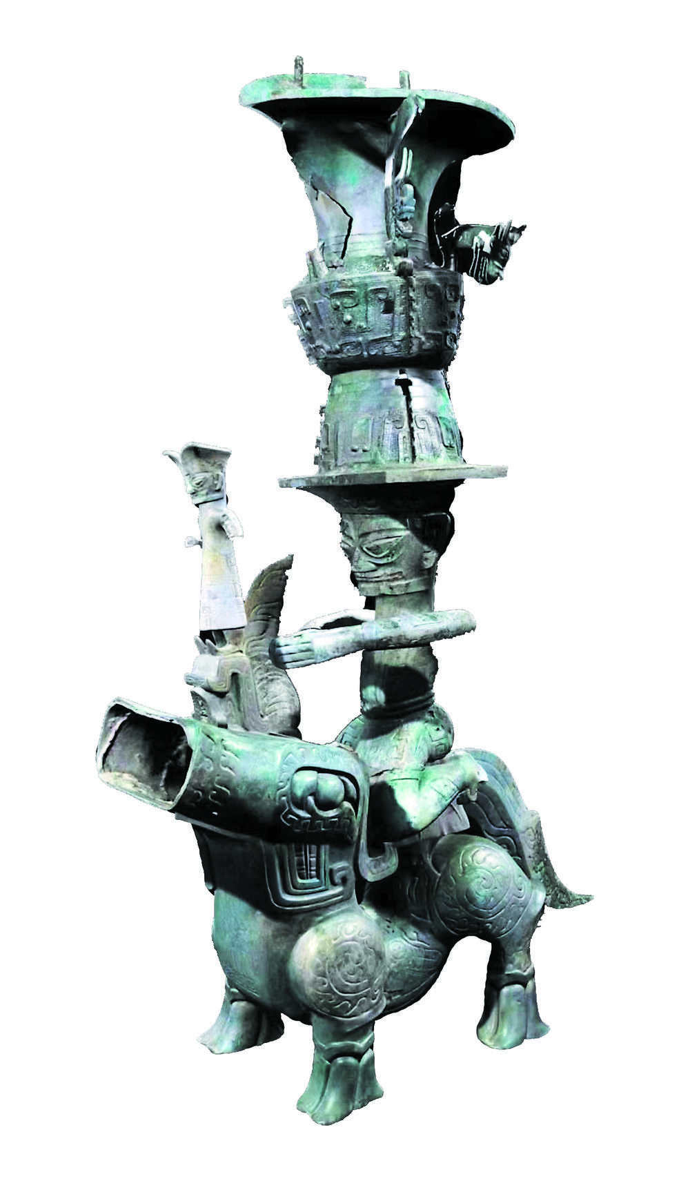 考古学家利用数字三维模型实现了铜顶尊跪坐人像与神兽的成功拼对