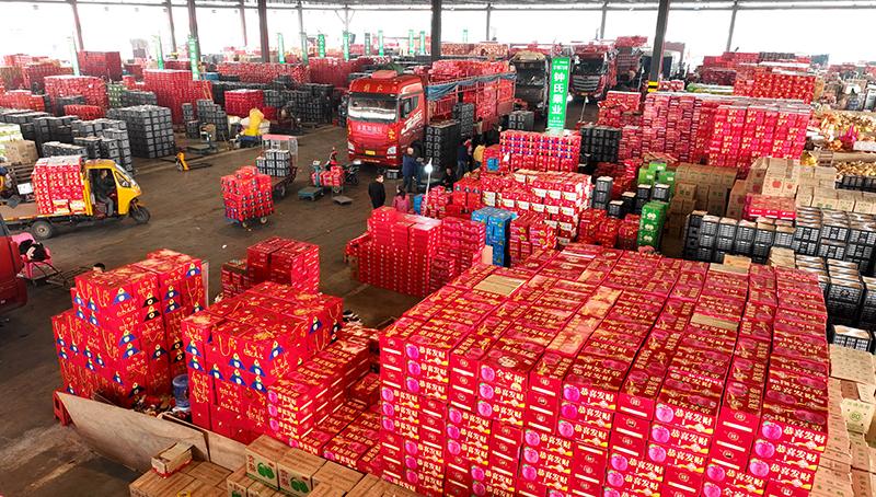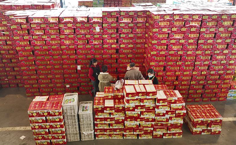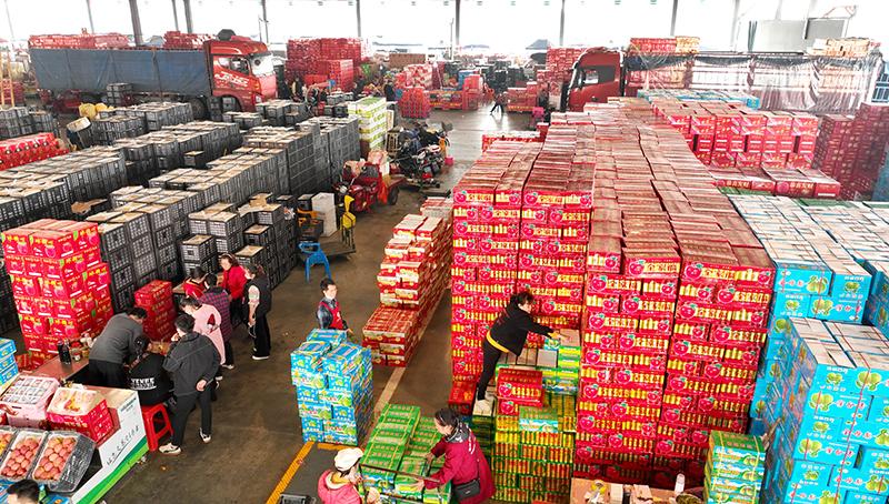 春节临近,广西柳州市各水果批发市场里一派繁忙景象,随处可见工人装卸水果的忙碌身影,商家筹备货源,满足节日市场供应。
