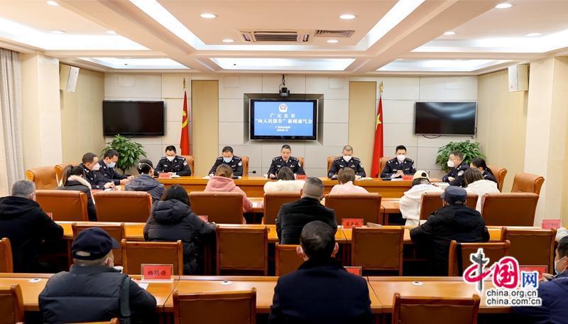 通气会上,广元市公安局指挥中心、刑侦支队、经侦支队、治安支队、交警支队、禁毒支队、出入境管理支队等相关部门负责人就媒体关注的问题进行了现场交流。“两代表一委员”及警风警纪监督员代表、社区群众代表和退休民警代表现场对广元市公安局提出工作意见建议。(郭自慧)
