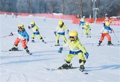 图为吉林长白山鲁能胜地度假区,小朋友在体验滑雪。 刘以晴 施 维摄影报道