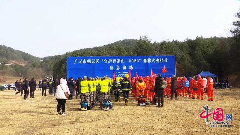 1月17日下午,广元市朝天区“守护曾家山·2023”森林火灾扑救应急演练在曾家镇大竹村一组(小地名为萱麻坪)开展。