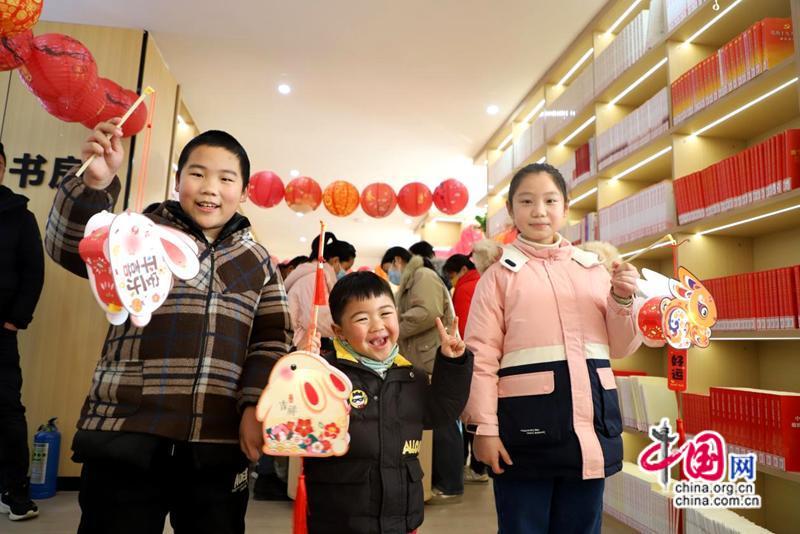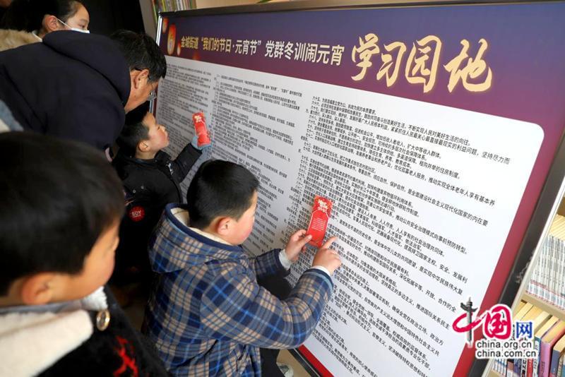 “把二十大学习内容嵌入元宵‘灯谜’里,在欢度佳节时,快乐学习,幸福满满啊!平日里村里也组织学习,可能年纪大了,记不住的,还是这个好,答案就在这块展板里,认真找一遍就是认真学习一次啊,我找3遍了,第一次花了10多分钟,第二次约有5分钟,第三次直接就找到了……”50多岁的王玉蓉开心地去和工作人员对答案,幸福领奖。活动中,党员志愿者为来的大朋友、小朋友介绍了元宵节的习俗和花灯的典故以及制作方法。随后,在党员志愿者和家长的指导下,小朋友们通过折叠、粘贴,制作出一个个兔形花灯,孩子们挑着自己制作兔灯笼为读书房营造了一种分外喜庆的氛围,有兔子灯的元宵节才有味儿。在“写祝福”活动时,8岁的魏铭瑶提笔就写“绿水青山就是金山银山”,她高兴地告诉妈妈这句话她记得最深。