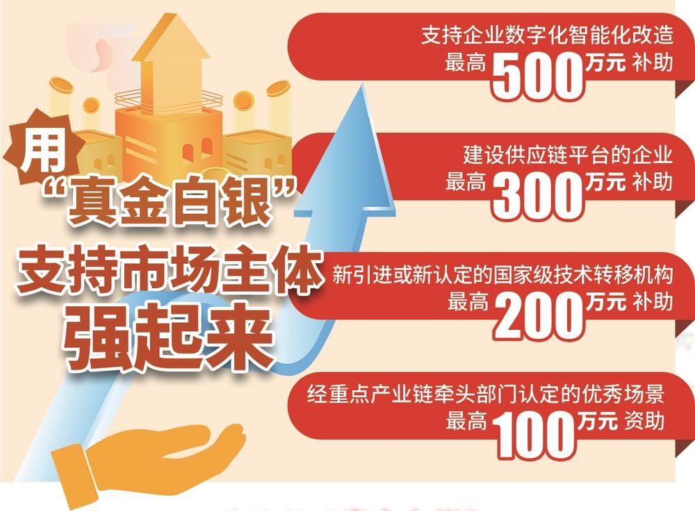 记者梳理《政策措施》发现,在抛出精准“滴灌”的一揽子“及时雨”政策的同时,实打实的各项奖励及补贴实实在在为企业减负纾困,切实提振市场主体实现高质量发展的信心。